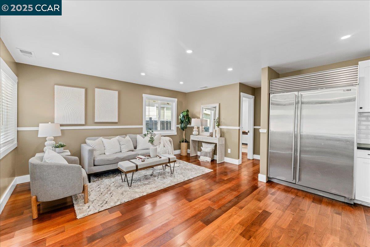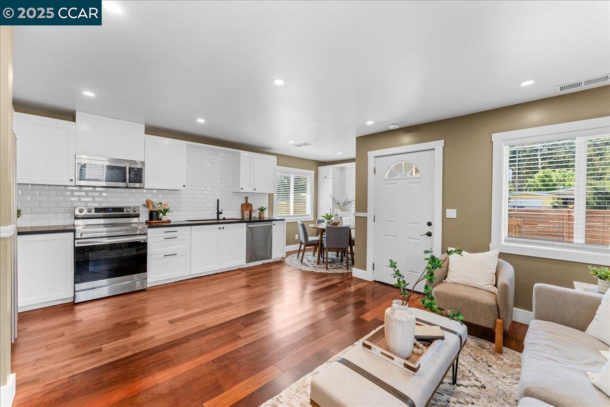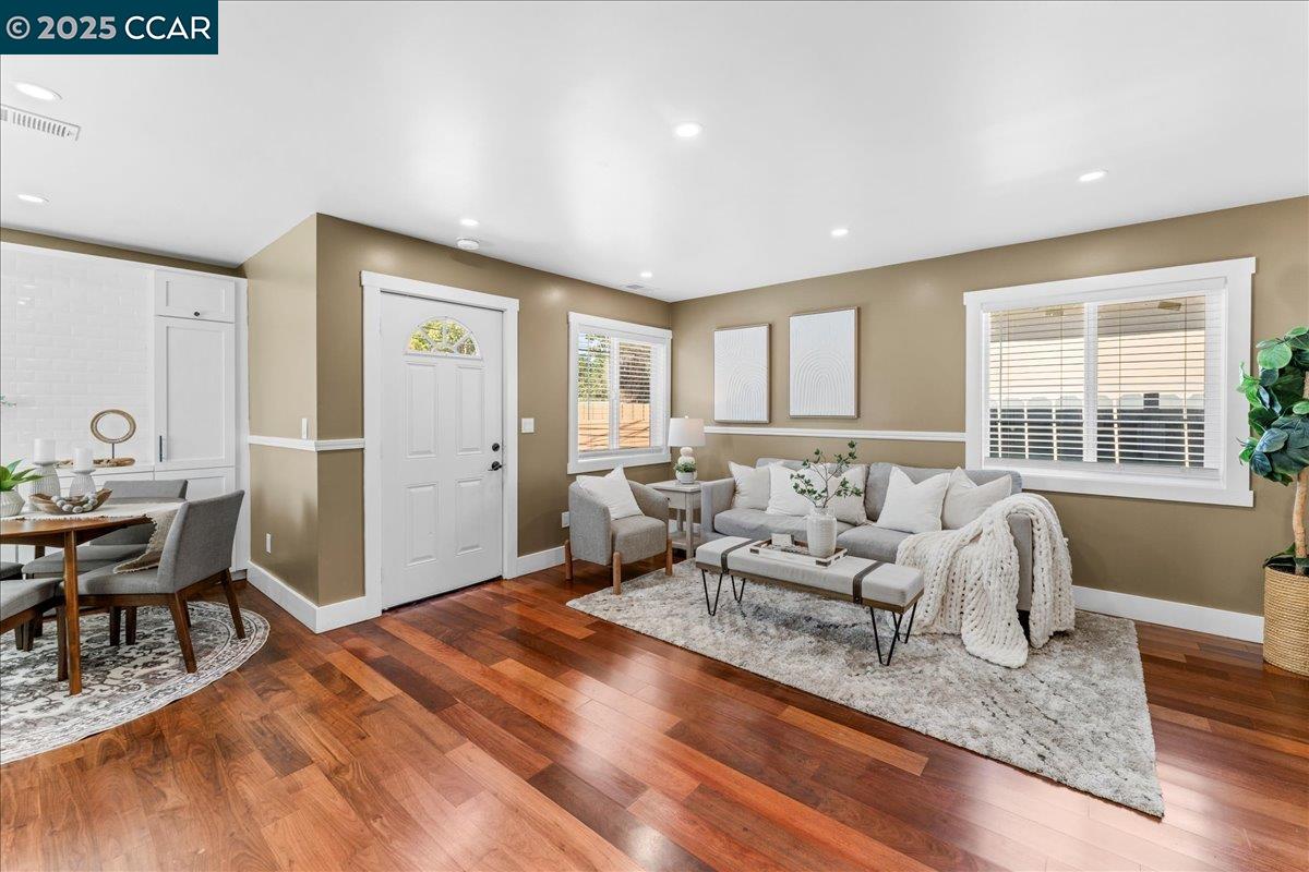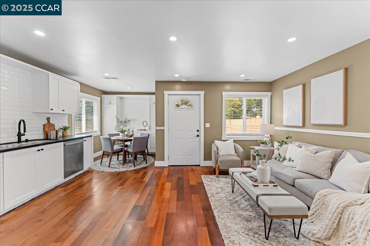 NEW PRICE! This Property qualifies for up to $47,000 of DOWN PAYMENT ASSISTANCE! WOW! Call 4 More details!! Showcasing modern design & upgrades, this residence radiates the elegance of NEW CONSTRUCTION w/ a refined, contemporary edge. Completed w/ APPROVED PLANS & PERMITS, every detail has been elevated to the highest standard. Interiors boast smooth finish walls w/ designer chair rail molding, rich hardwood floors, fresh custom paint, & dramatic recessed lighting. The kitchen pairs sleek Blackstone counters with custom cabinetry, stainless steel appliances, and timeless subway tile, creating a space that is as functional as it is striking. Both bathrooms exude spa-like luxury with dual sinks, chic fixtures, and soothing finishes that elevate everyday living. Dual pane windows, full insulation, & Title 24 compliance provide year-round comfort, while new plumbing, washer & dryer, 200-amp electrical, and central heat pump w/ indoor air handler deliver efficiency and ease fully powered by electricity, no gas use. Outside, a new roof, cement siding, fresh paint, & perimeter fencing add polish. Ample front parking and a private backyard retreat for entertaining complete this sophisticated, move-in ready jewel w/ upgrades too numerous to list!