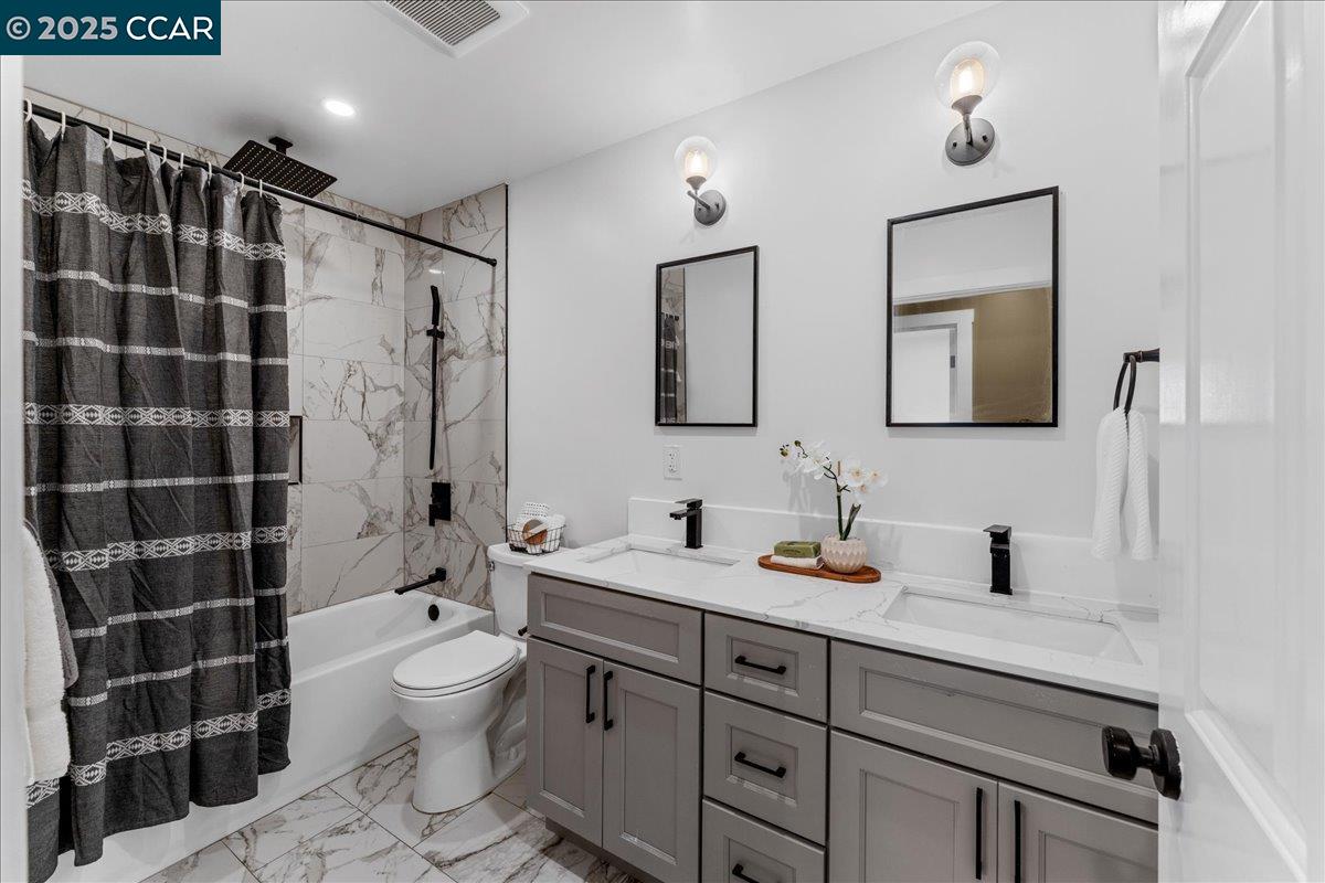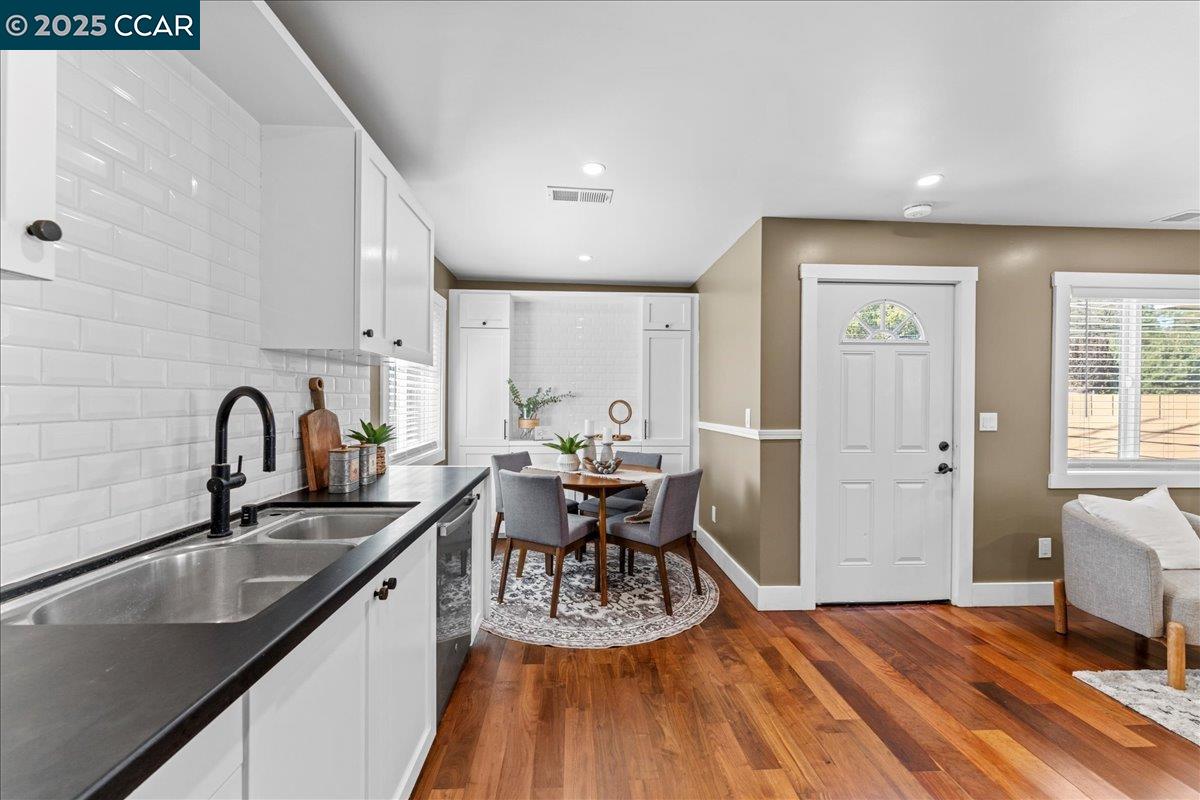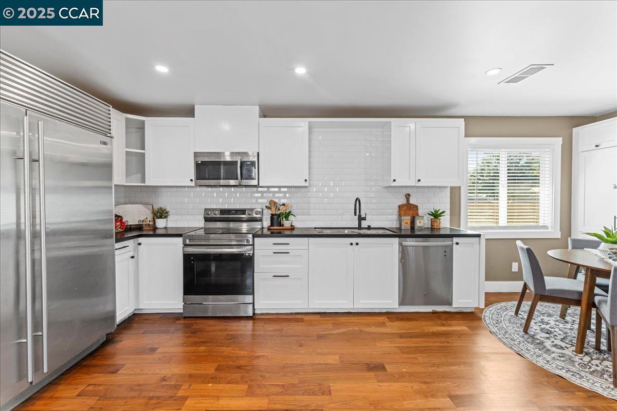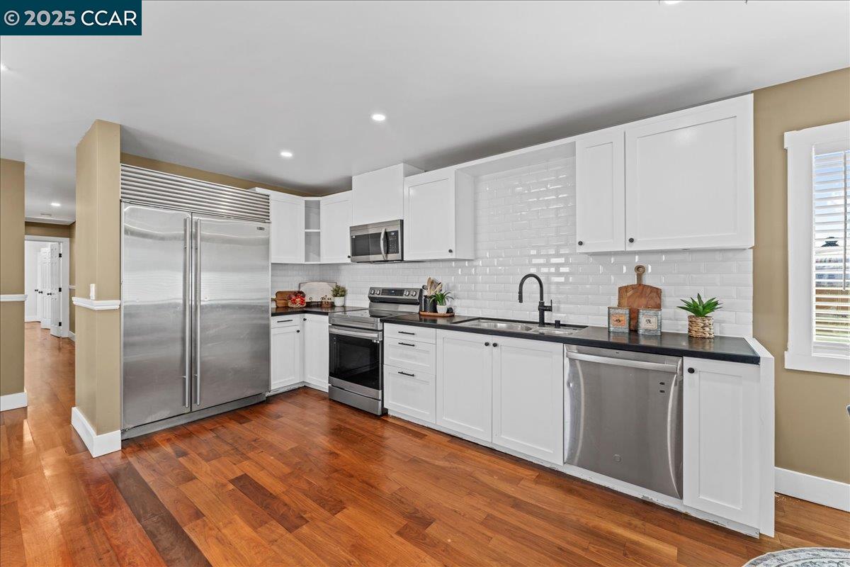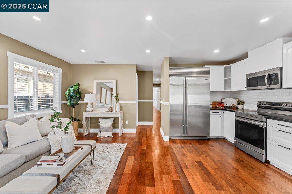 NEW PRICE! This Property qualifies for up to $47,000 of DOWN PAYMENT ASSISTANCE! WOW! Call 4 More details!! Showcasing modern design & upgrades, this residence radiates the elegance of NEW CONSTRUCTION w/ a refined, contemporary edge. Completed w/ APPROVED PLANS & PERMITS, every detail has been elevated to the highest standard. Interiors boast smooth finish walls w/ designer chair rail molding, rich hardwood floors, fresh custom paint, & dramatic recessed lighting. The kitchen pairs sleek Blackstone counters with custom cabinetry, stainless steel appliances, and timeless subway tile, creating a space that is as functional as it is striking. Both bathrooms exude spa-like luxury with dual sinks, chic fixtures, and soothing finishes that elevate everyday living. Dual pane windows, full insulation, & Title 24 compliance provide year-round comfort, while new plumbing, washer & dryer, 200-amp electrical, and central heat pump w/ indoor air handler deliver efficiency and ease fully powered by electricity, no gas use. Outside, a new roof, cement siding, fresh paint, & perimeter fencing add polish. Ample front parking and a private backyard retreat for entertaining complete this sophisticated, move-in ready jewel w/ upgrades too numerous to list!